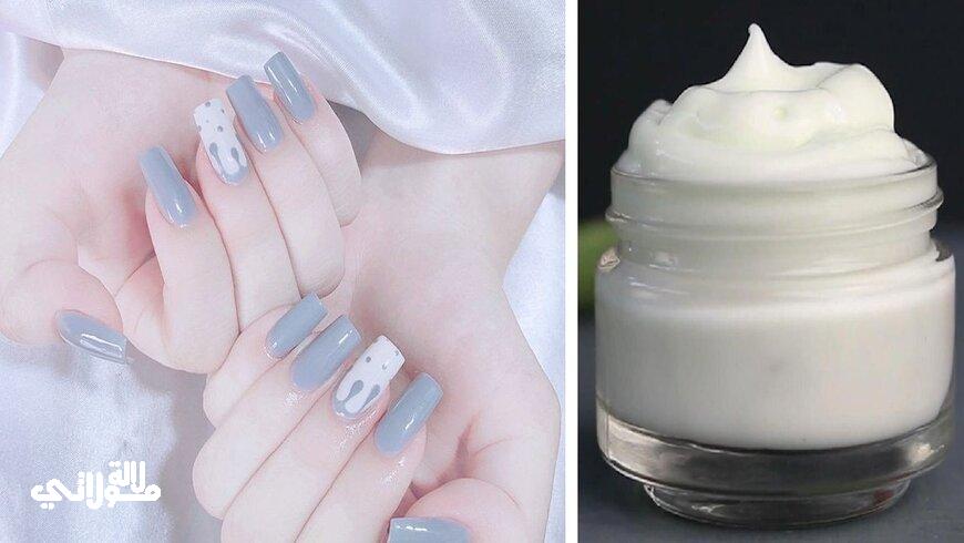 طريقة التحضير :بعد أن نخلط المكونات مع بعضها جيدا إلى أن تتجانس نقوم بتطبيق الخليط على اليدين وتغليفهما بغطاء بلاستيكي ونتركه مدة 30 دقيقة ثم نشطف بالماء البارد ، نكرر هذه الوصفة يومين لمدة 5 أيام للحصول على نتائج فعالة .