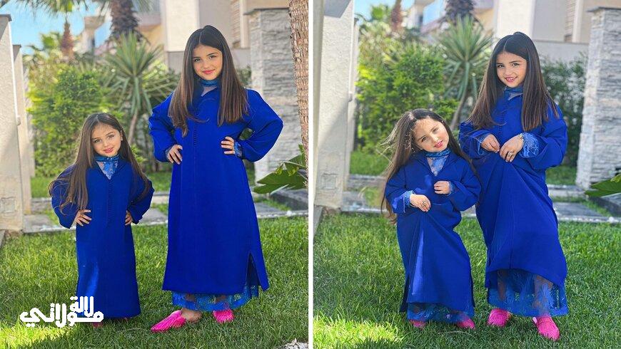 وظهرت كل من غزل وشقيقتها ليلى روز وهما ترتديان القفطان المغربي بنفس التصميم واللون حيث تميز بلونه الأزرق الفاتح، وكانتا تحملان الطعريجة المغربية وأمامهما الفاكية المتنوعة التي لا يمكن أن يخلو منها أي بيت مغربي في مثل هذه المناسبة.